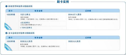 龙卡全球支付卡境内外通用,且所有外币交易(包含刷卡消费、网络消费、取款等)均实现自动购汇,折算为人民币记入龙卡全球支付卡人民币账户,持卡人仅需按账单以人民币归还欠款即可,还款更便捷。
