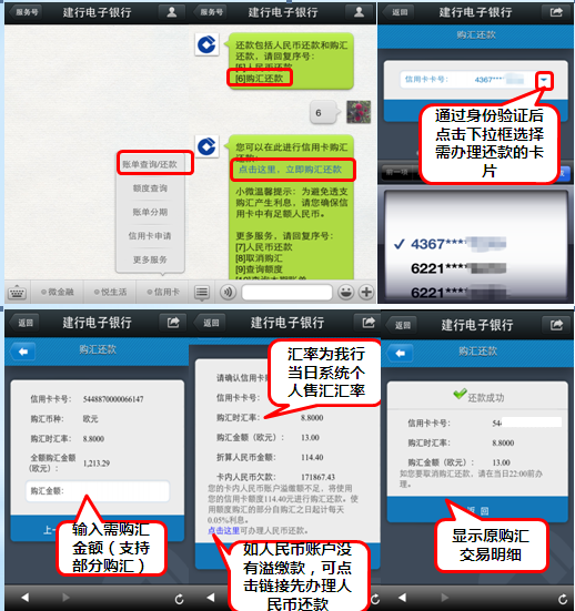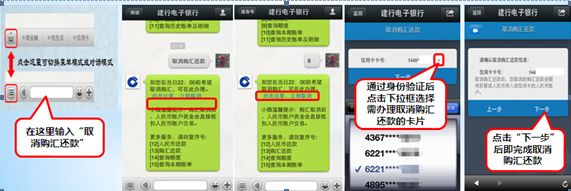 添加我行微信公众账号并完成信用卡绑后,可通过以下方式办理取消购汇还款: