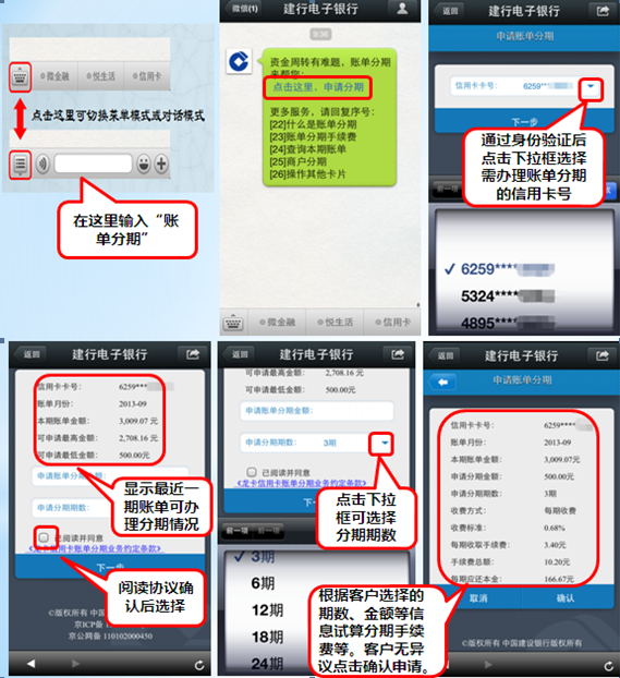 2) 切换至对话模式,在微信页面输入“账单分期”;