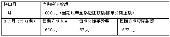 注:每月手续费=分期总金额*手续费率,将在分期后的每个账单日按期入账并收取。